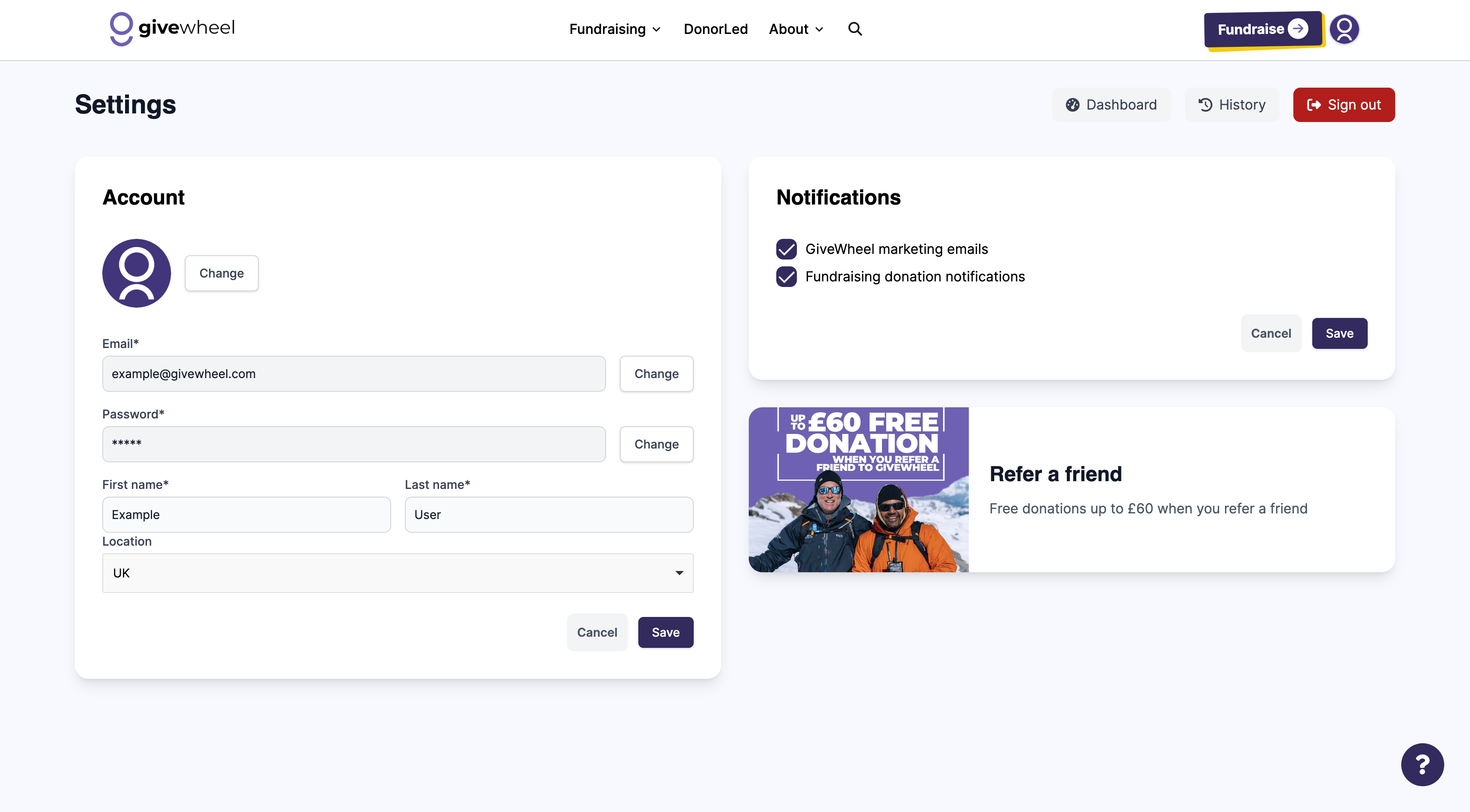 With GiveWheel, you can opt in or out of specific forms of contact to receive only the notifications you wish to receive. To manage your contact settings, ensure you're logged into your GiveWheel account and head to your Dashboard > Profile